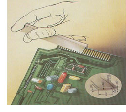 Gold fingers glove/board stiffeners are easily applied in long strip form with sufficient spring tension to cling to the board through many cycles resulting in significant labor and materials savings.